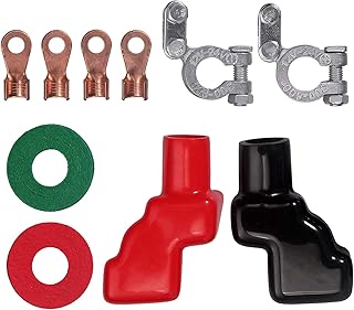 AUTOUTLET 1 Paar Batterieschalter, Schnellklemmen Steckverbinder Batterieschalter Polklemmen Autobatterie Batterieclips Anschlussklemmen mit Abdeckung, 2X Unterlegscheiben+ 4X Kupferringklemmen