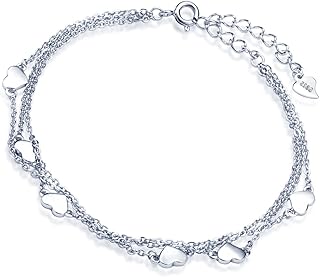 925 Sterling Silber Herzen Charm-Armband Armkette 3 Kettchen Armschmuck für Damen Mädchen, 6.3-7.7" Verstellbar, Silber/Silber vergoldet (Silber)