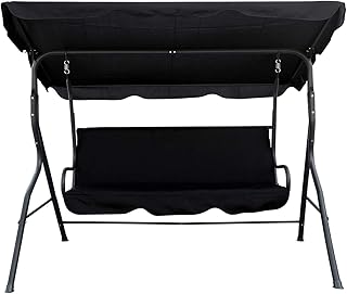 FineHome XXL Luxus Hollywoodschaukel Gartenschaukel 3-Sitzer mit Polster Dach schwenkbar Anthrazit/Schwarz