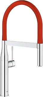 GROHE Essence | Küchenarmatur - Einhand-Spültischbatterie, mit herausziehbarer Profibrause & Schlauchauslauf in rot | chrom | 124975