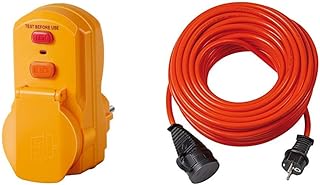 Brennenstuhl Personenschutz-Adapter BDI-A 2 30 IP54, 230 V, gelb & Bremaxx Verlängerungskabel (10m Kabel, für den Einsatz im Außenbereich IP44, einsetzbar bis -35°C, öl- und UV-beständig) orange