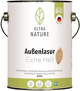 ULTRA NATURE Außen Lasur, 2,5L, Eiche Hell, Vegan, Natürlich Bio, Lösemittelfrei, Holzschutzlasur