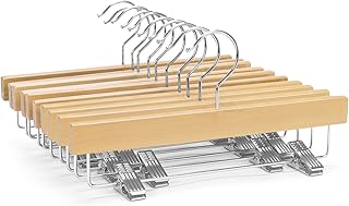 Nature Smile 30 cm lange Kleiderbügel aus Massivholz für Hosen, Röcke, Hosen, Hosenunterbügel mit 2 verstellbaren Clips, rostfreie Haken, 10 Stück (natürlich)