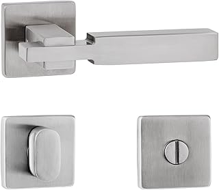 Eckige Drückergarnitur Long Cube Edelstahl matt - WC/Bad *Metallische Unterkonstruktion*