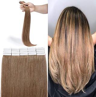 Silk-co Tape in Extensions Echthaar 20Pcs Haarteile Echthaar Glatt Weich Natürlich Tape Extensions Echthaar Klebeband Haarverlängerung 50g 50cm Hellbraun