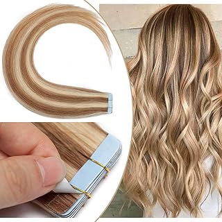 Tape in Extensions Echthaar Haarteil Echthaar 20Pcs Tape in Extensions weich glatt Tape Extensions Echthaar 7A Remy Haare Klebeband Haarverlängerung 30cm-40g 12P613# Goldenbraun & Bleichblond