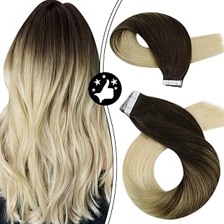 Moresoo Extensions Echthaar Tape Ombre Menschliches Haar Remy Tape in Extensions Balayage Dickes Haare Seamless Skin Weft Haarverlangerung Echthaar Tape Glatt Haare 20 Tressen 50g 45 cm