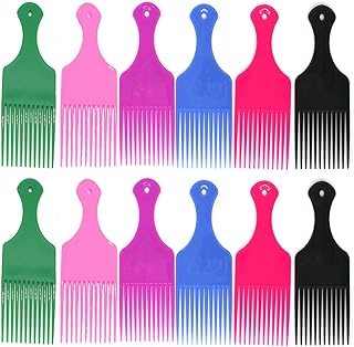12 Stück Afro Haar Kamm Kunststoff Kamm Breite Zahn Pick Kamm Haar Fingerstyler Glatte Haar Pick Kamm mit Griff Haar Pick Kamm Friseur Styling Werkzeug für Dichtes,Lockiges und Langes Haar