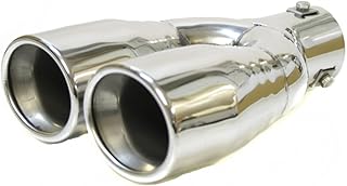 Doppel Endrohr Auspuff Blende Auspuffrohr Edelstahl Chrom Auspuffendrohr Universell Schalldampf Endstück Endrohrblende Sportauspuff Optik Tuning