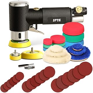 Mini poliermaschine, Druckluft Polierer, SPTA 25mm 50mm 80mm Exzenter schleifer Winkelschleifer mit 23tlg Polierschwamm Polierpad Polierfell Polierset Polierteller Kit von Auto, Möbeln,Metall-ARPS3SET