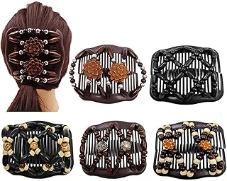 5 Pcs Perlen Haarkämme, Elastische Comb Haarspangen, Doppel Haarkamm Clip, Haarspange Dehnbar, Dehnbarer Doppel Haarkamm, für Frauen Mädchen Haarschmuck DIY Hair Styling Tool