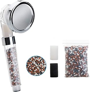 Wemk Filtration Duschkopf, Hochdruck Handbrause mit lonenfilter und Kalkfilter, Filterkapazität um 73% Erhöhen, mit einer Packung Mineralkugelersatz und 2 Filterschwämme